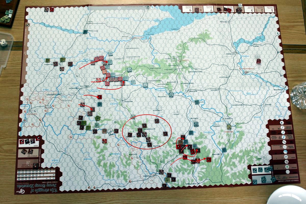 ソ連軍の司令部が何処にあるかを考え、それらが活性化するとどうなるか予想してみてください。ラッシュが効いたら孤立しませんか?