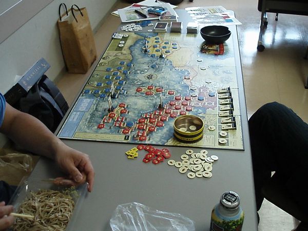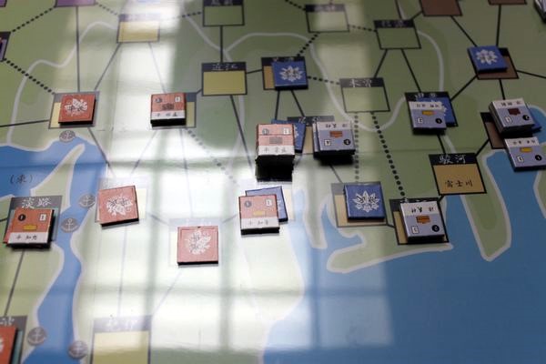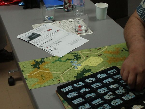 この『激マン』で採用されている所謂“チット引き”のシステムは、チットに司令部の名前が書かれていて、それらをカップにまとめて入れ。そこから1枚ずつ引かれた司令部が活性。その指揮範囲にあるユニットが移動と戦闘を行えます。そこで司令部の指揮範囲を重複化させておけば、何度もユニットが移動と戦闘を繰り替えせるのです。そのさまがラッシュに似ているので名づけました。