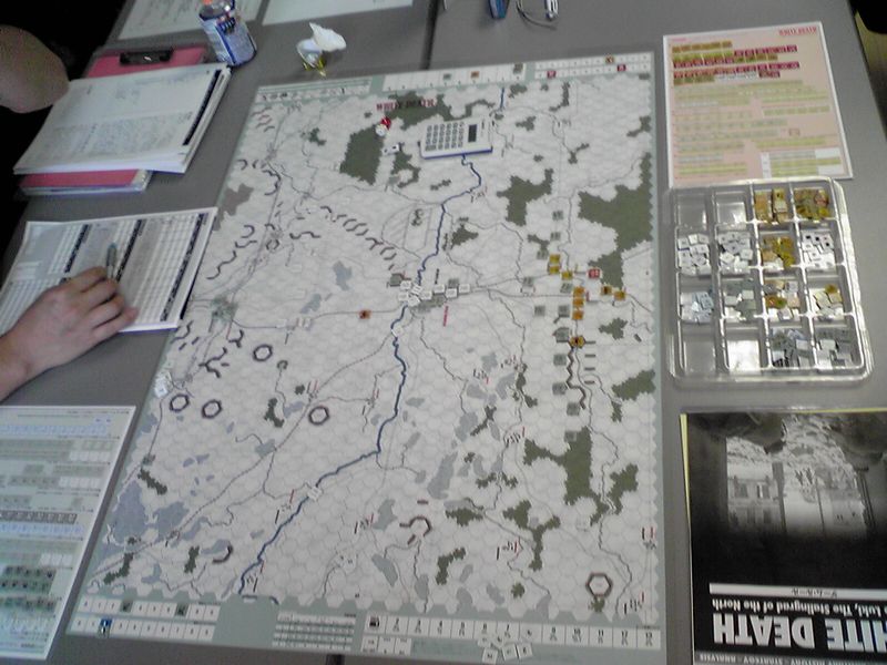 例えば、左から出てくるドイツ軍が入ったとすると、アメリカ軍に置いてきぼりとなり。アメリカ軍は中央上から左下を目指すため、岡へ登る事は有り得ず。そしてドイツ軍の1個小隊も、アメリカ軍が脱出するヘクスを目指さないと、お話しにならないのです。