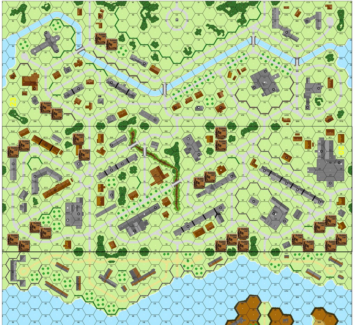 以下がVASLで配置を再現したものになります。記憶からですから、間違いもあるでしょうが、多くはないと思っています。全てに意味がありますから。