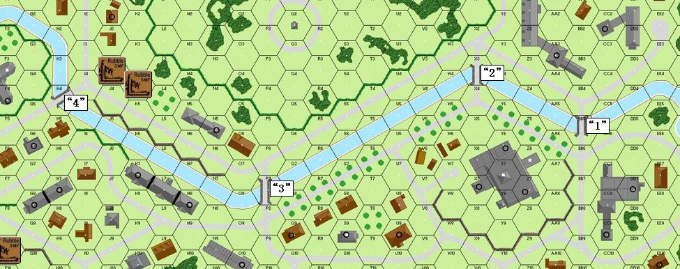 ドイツ軍は運河に架かる“1”~“4”の橋を越える必要があるのです。