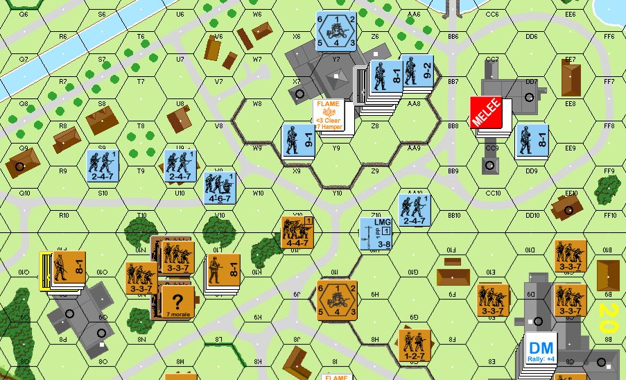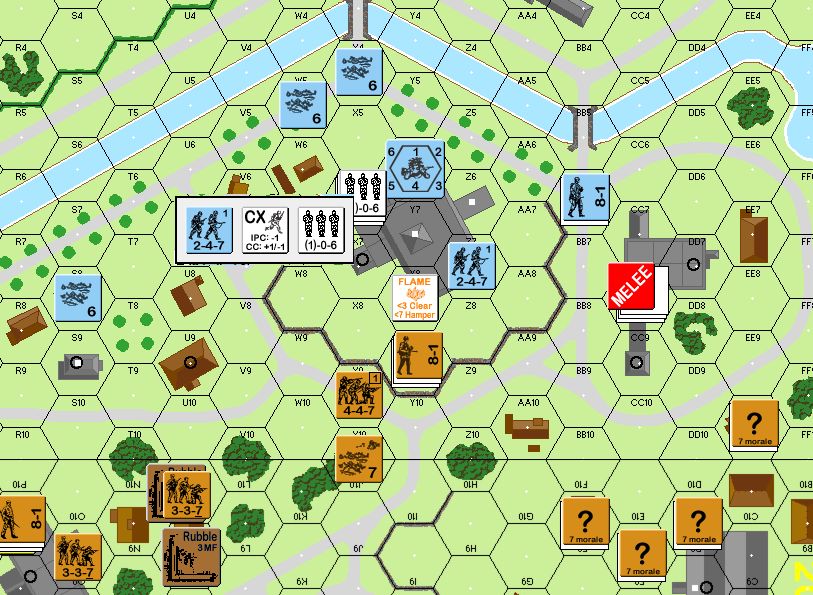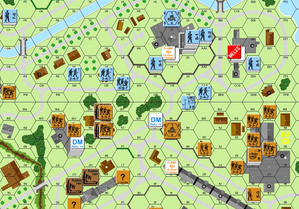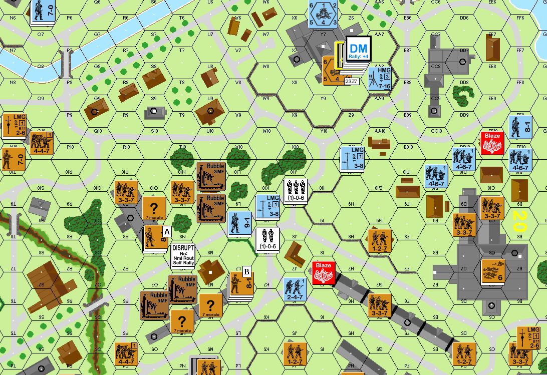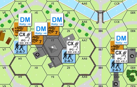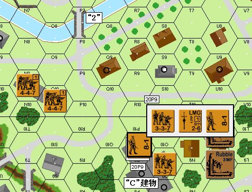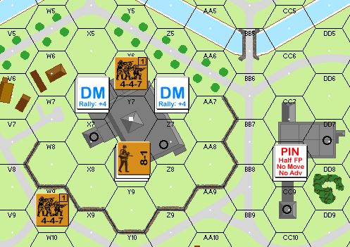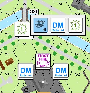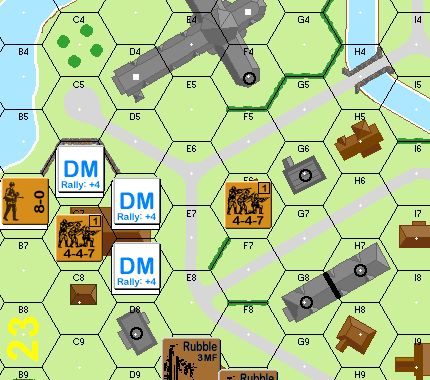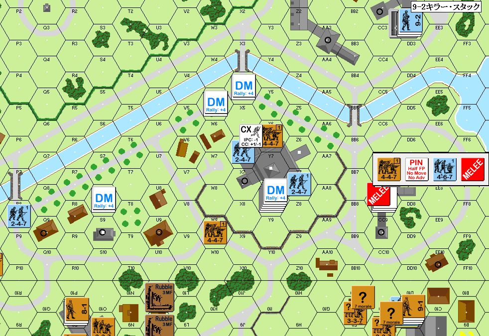 2.第1ターンのドイツ軍RPh終了時に、全てのロシア軍447はNMCを行う。このNMCに失敗して混乱した分隊はDMになる。またPINやHoB、損耗、 ELR失敗に伴う部隊の劣化も、普通のMCのように適用される。この過程で壊滅した部隊もドイツ軍のCVPに算入される。