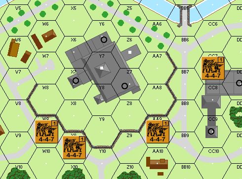 そこから、道路を渡る度に、2~3ターンずつ掛けさせれば、ドイツ軍は時間切れになる。