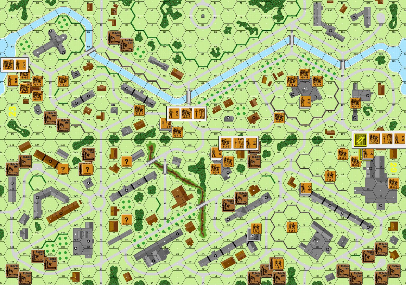 ソ連軍は23マップで運河の東(図でも写真でも下)に配置となります。ドイツ軍は運河の向こう側です。