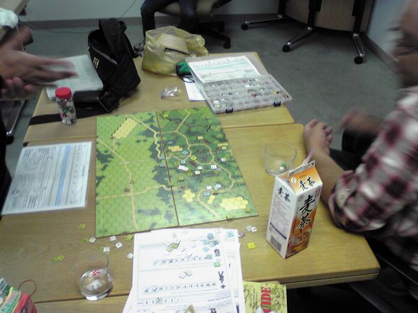 今回の対戦では、休憩も挟まず、食事も軽食だけで済ませ没頭していました。席を外したのは、トイレと私の会場の写真を撮る間。そして各ターンの写真を撮った時間も、20分程度の経過があり、早くて5ターンの15分、長くて最終ターンの1時間30分でした。
