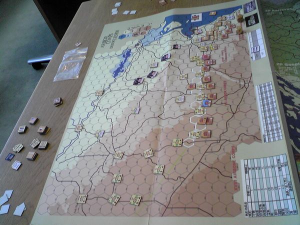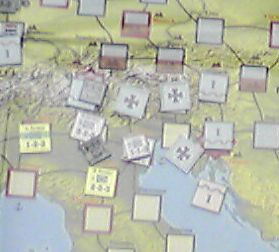 そしてモスルからバグダッドへの布陣も誤ってしまいました。私はモスルからの攻撃による、戦闘後前進を防ぐため、ユニットを縦深な布陣を取りました。しかし、戦闘の結果を考えれば、モスルからの攻撃でバグダッドまでは戦闘後前進は出来ず、逆に投入したユニットでモスルへ攻撃を指向させれば、サイの目勝負でしたが、占領の可能性は残されていたのです。