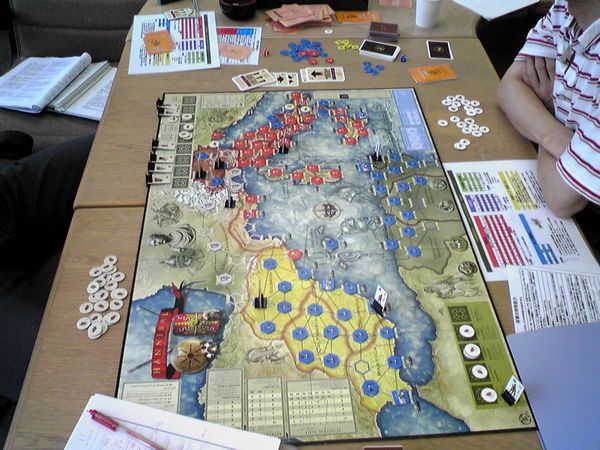 私は迂闊にも、トラックチャートで示されているVPで、勝負の行方を占っていたのです。19ターンの時点で7VPでしたから、最終ターンにエルサレムとメディアの2VPを失っても、で1VP取り返せる、と。