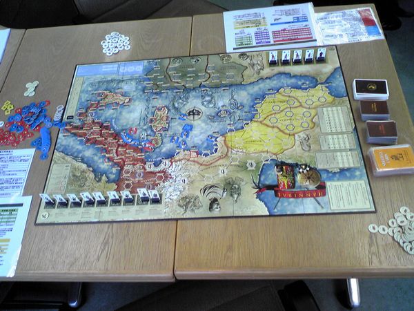 5ターンが短い理由は、両陣営ともイベントを続けたためで、最終ターンが長かったのはVP計算に手間取たため。それに感想戦もありましたしねぇ。