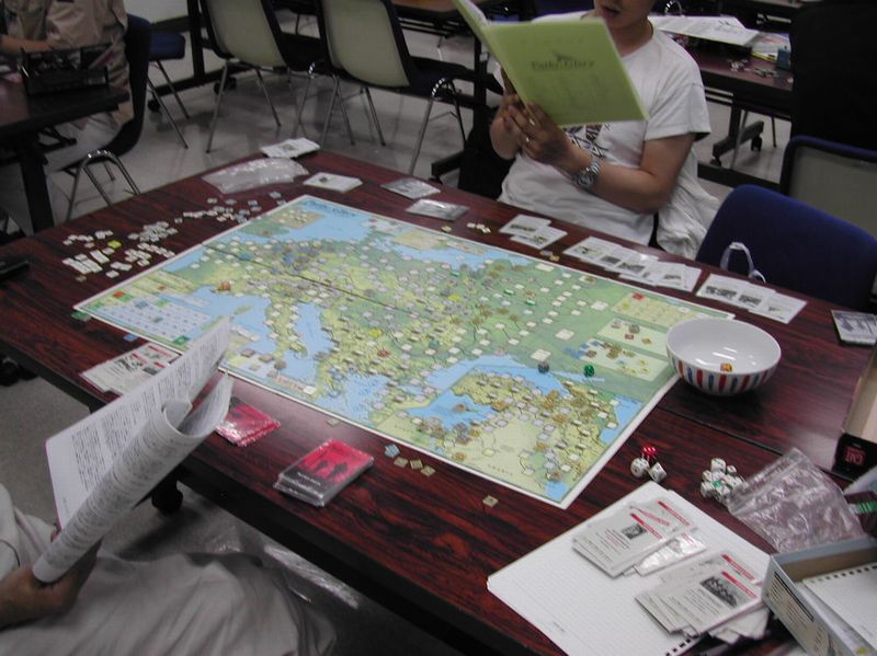 『パスグロ』を持ち歩いていても、なかなか対戦には致らなかったですねぇ。それでもWeb上で発言を続け、方々の集まりに『パスグロ』連れで顔を出していると、他のサークルの方と対戦する機会に恵まれました。でも、あまり研究が進んでいる様子は無かったんです。補給をばっさり切ってしまえたり、パリを陥落させたり、と大技が決まっていたのです。