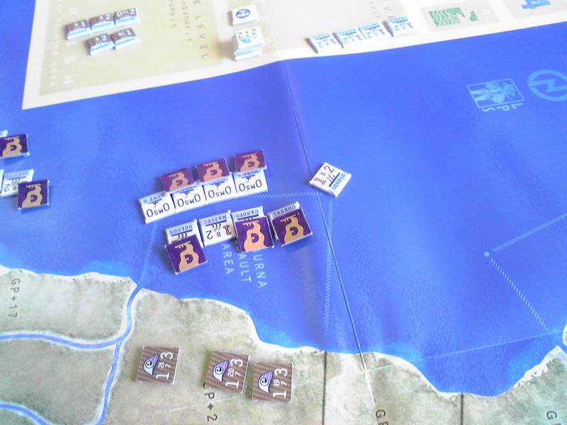 連合軍はうっかり対応を誤ると、そのまま押し切られてサドンデス負けをしてしまう危険を絶えず抱えつつ、日本軍にプレッシャーを加えるべく生き残った精鋭をいかに展開するか。日本軍は、攻勢にどれくらいの勢力(兵力だけでなく手間も加えたもの)を注ぎ込み、さらに将来行われる連合軍の反攻に対し、どのような布陣で挑むか。それらを手元に来たカード=補給物質で如何に行うかが、(゜∀゜)イイんですよ。
