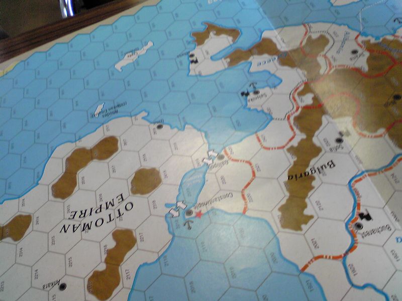 国や植民地の攻略は首都を占領すれば達成されます。しかし資源ヘクスは黄色の縁取りされたヘクスへ、実際に日本軍を派遣しなければなりません。これに結構神経を使います。何故かと言えば、陸軍と海軍の協同作戦で、手間がかかる上に派遣した部隊の、その後をどうするか、ある程度決めておく必要があり厄介なんです。