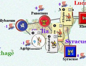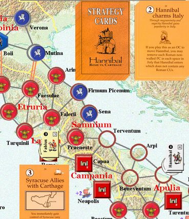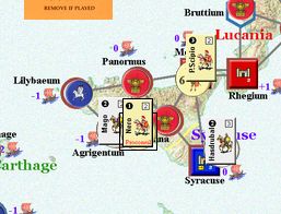 カルタゴは「オラはローマが敵だべ」でハンニバルの進駐しているマッシリアにPCを置けば、ローマは「奴隷から徴集」で同じ地域にPCを置いた。